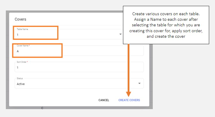 +add button on your screen - From the tables drop-down list, select the table for which you wish to create a cover for