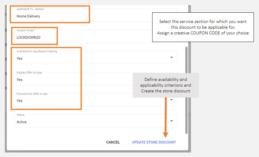Update Store DiscountNote: Information submitted here will be utilized to auto manage campaign availability both for the partner portal and online ordering scenarios.