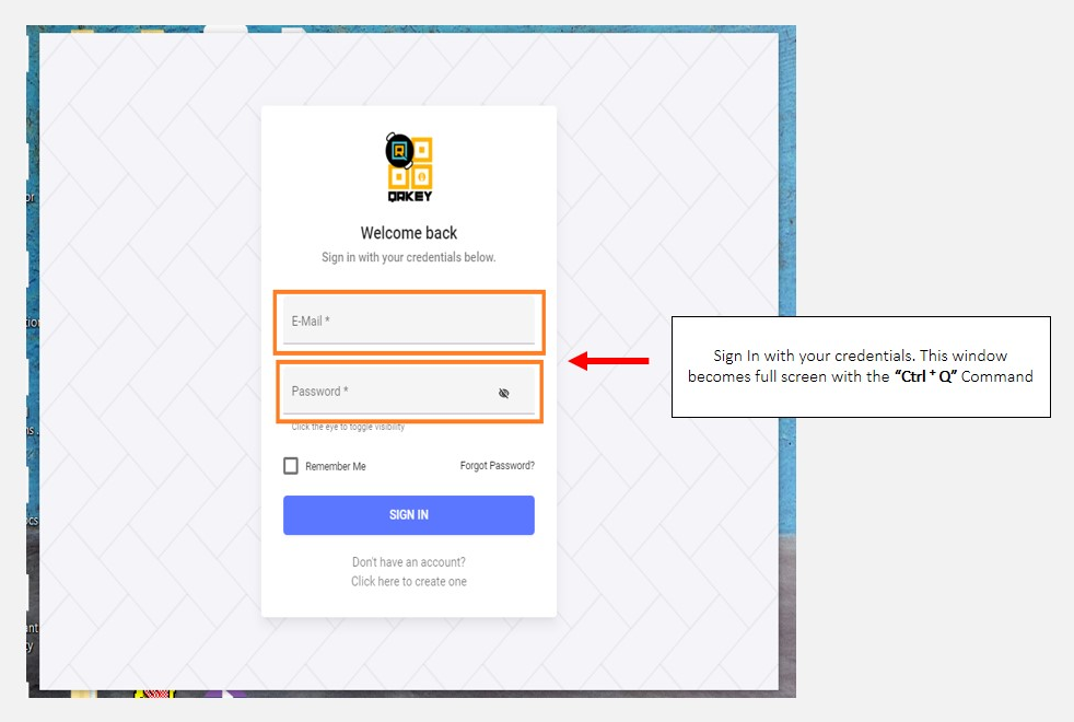 - Click the QRkey icon to open QRkey EXE. Use the command "Ctrl + Q" from your computer keypad to make the EXE view full screen.
