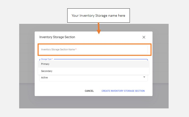 +add button on your screen - You can give a name of your choice to the storage areas you create and categorize them as primary or secondary storage areas